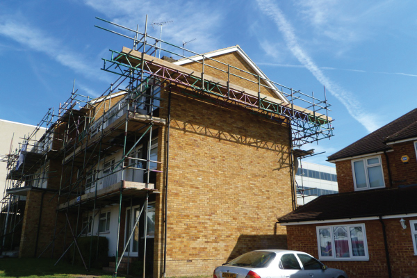 Safe Access Scaffolding were commissioned to erect scaffold around a block of flats in Potters Bar, Hertfordshire in the summer of 2012. Two main working lifts of Scaffold were erected with the side gables having to be beamed due to access required on both sides of the block. A Scaffold Hand Rail was erected around the roof perimeter for repair work to take place.