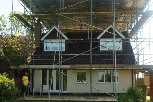 Safe Access Scaffolding were commissioned to erect a temporary roof structure in Kings Langley, Hertfordshire in the early part of 2012. This temporary roof was used to prevent water damage and weathering to the property whilst its additional work was carried out, and new roof was added. The scaffolding erected also had a plastic sheeting around the scaffold perimeter to prevent water damage.